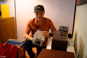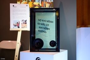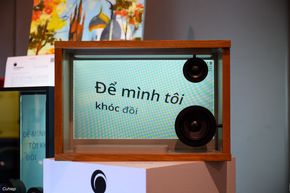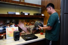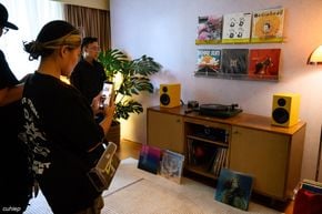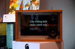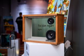 Góc của Anh Duyên Audio với những chiếc loa kính Cotodama hiển thị lời bài hát lúc phát nhạc, cả góc rất xinh: