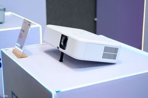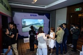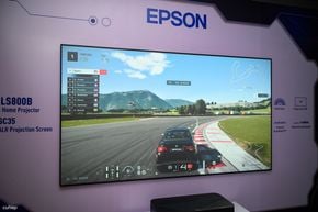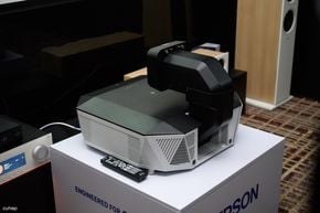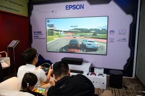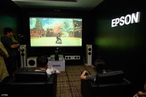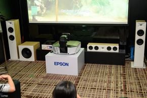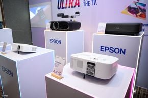 Gian hàng của Epson rất đông khách, với những chiếc máy chiếu đủ phân khúc: