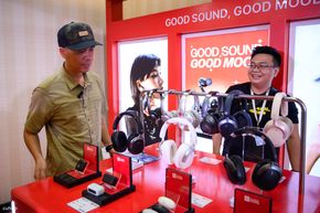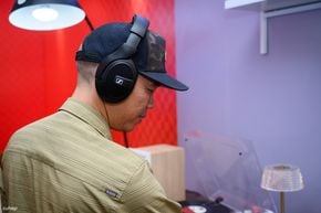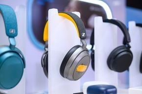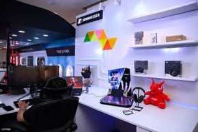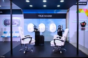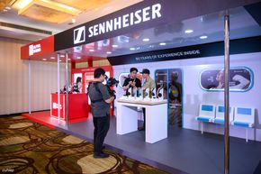 Ngay cạnh đó là Sennheiser với những cặp tai nghe true wireless Momentum và Accentum: