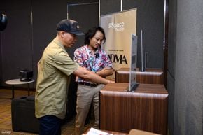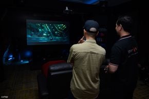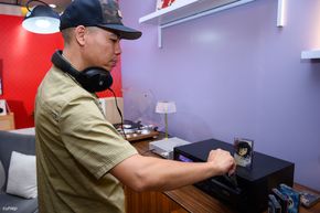 Nhiều người nán lại góc này, khu vực “3 trong 1” bao gồm cả xem phim, nghe nhạc và karaoke: