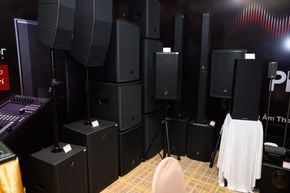 Loa HK Audio cỡ lớn từ Đức, xung quanh đặt mấy array loại dành riêng cho nhu cầu âm thanh ngoài trời hay sự kiện:
