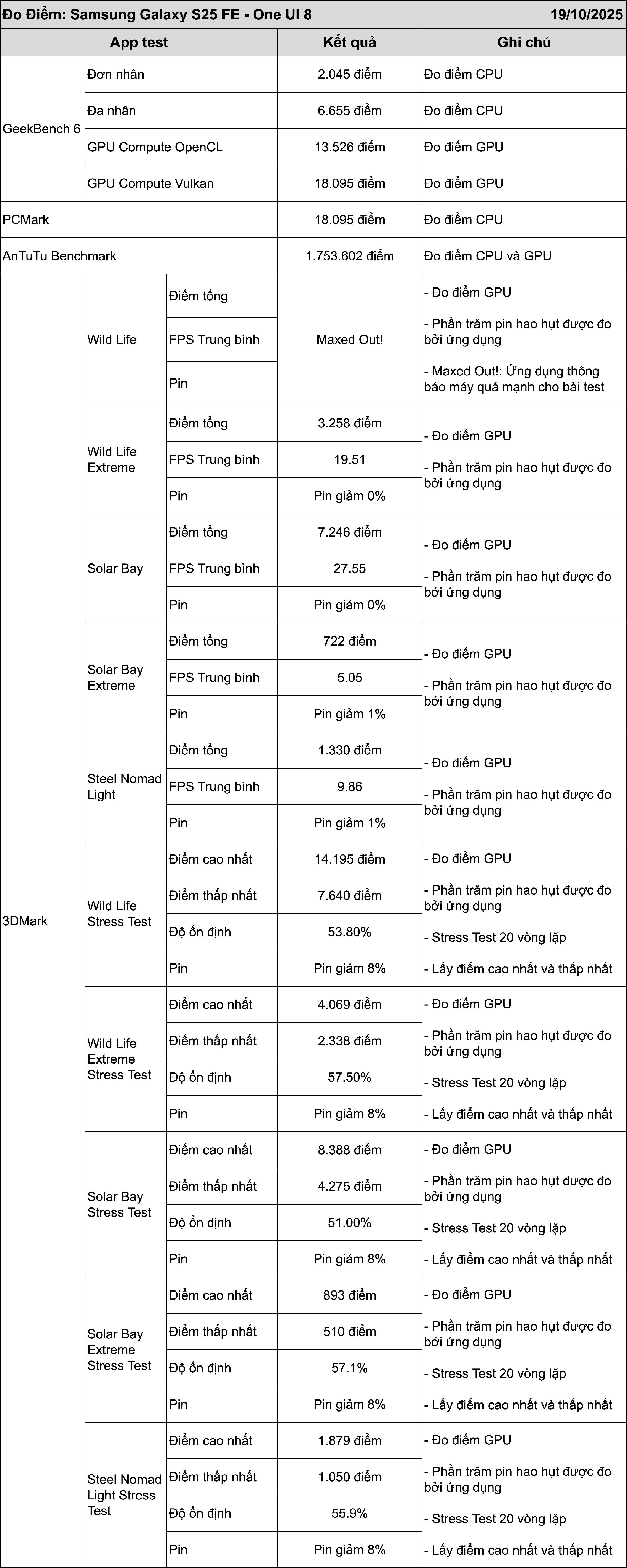 Đo Điểm Hiệu Năng: Samsung Galaxy S25 FE