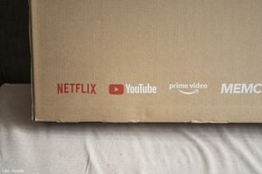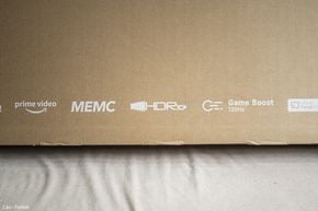 Thông tin trên cạnh trái của hộp Xiaomi TV A Pro 55 inch.