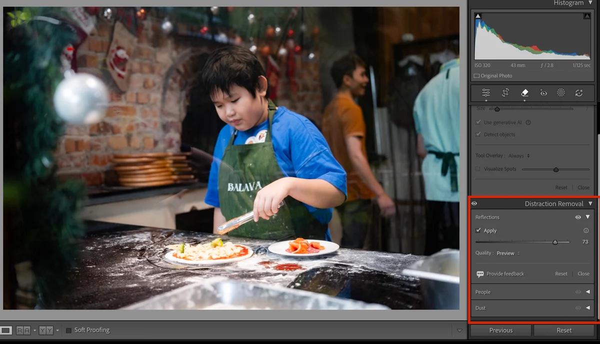 - Quét cọ để xóa trọn đối tượng dễ dàng và tự động điền nền bằng công cụ Xóa (Remove Tool).