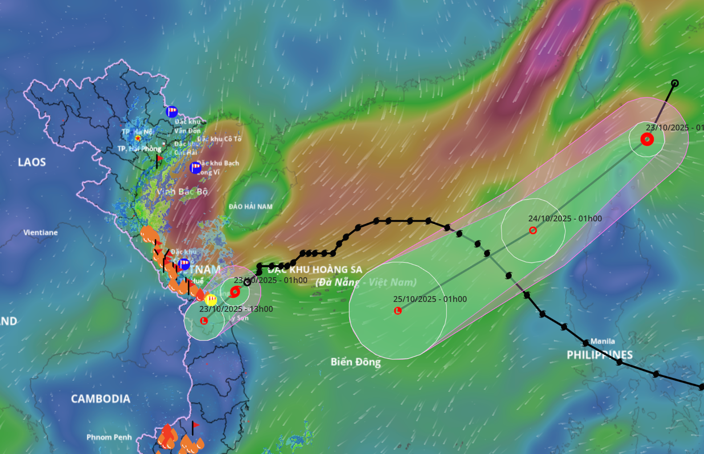 Theo Trung tâm Dự báo khí tượng thủy văn quốc gia, hồi giờ ngày 22/10, vị trí tâm bão ở vào khoảng 17,2 độ vĩ bắc; 110,9 độ kinh đông, trên vùng biển phía tây bắc đặc k...